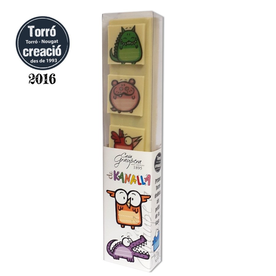 Aquest és un torró fet amb molta il·lusió i dedicat als més petits de casa, la capsa està pensada per ells, perquè retallin els animalets i els puguin utilitzar per posar el seu nom i enganxar-los allà on vulguin. Dins la capsa del torró trobareu també un dels 8 animalets col·leccionables obra de la il·lustradora mataronina Esther Pradell.