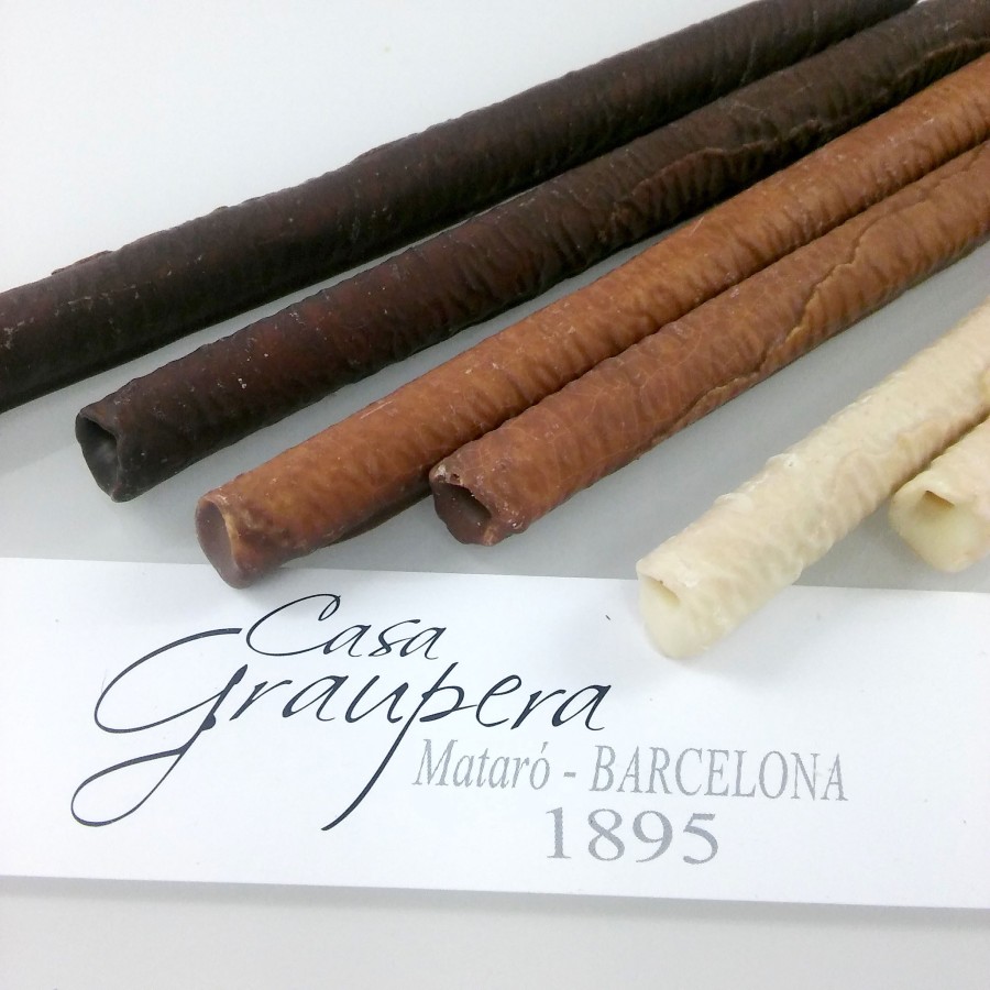 Barquillo artesano, bañados con tres tipos de chocolates.